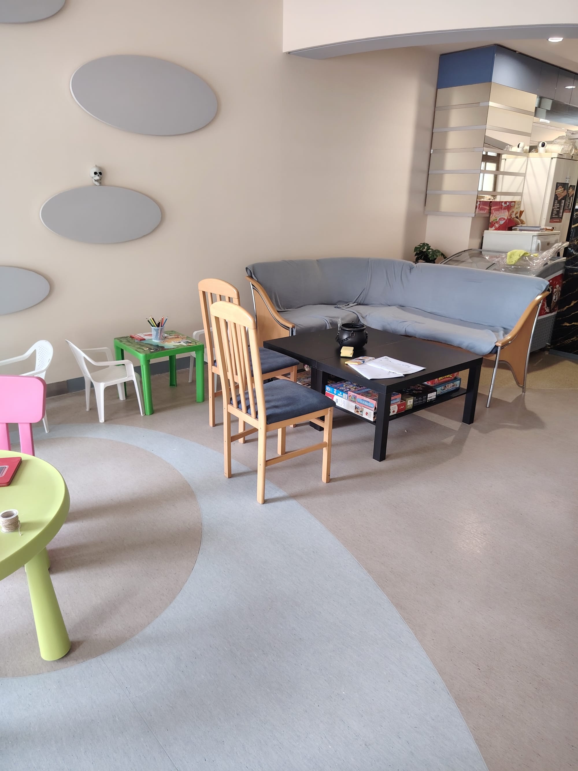 Külön kis tér, kimondottan gyerekeknek, ahol a kávézó által biztosított játékokat, rajz eszközöket díjmentesen igénybe vehetik