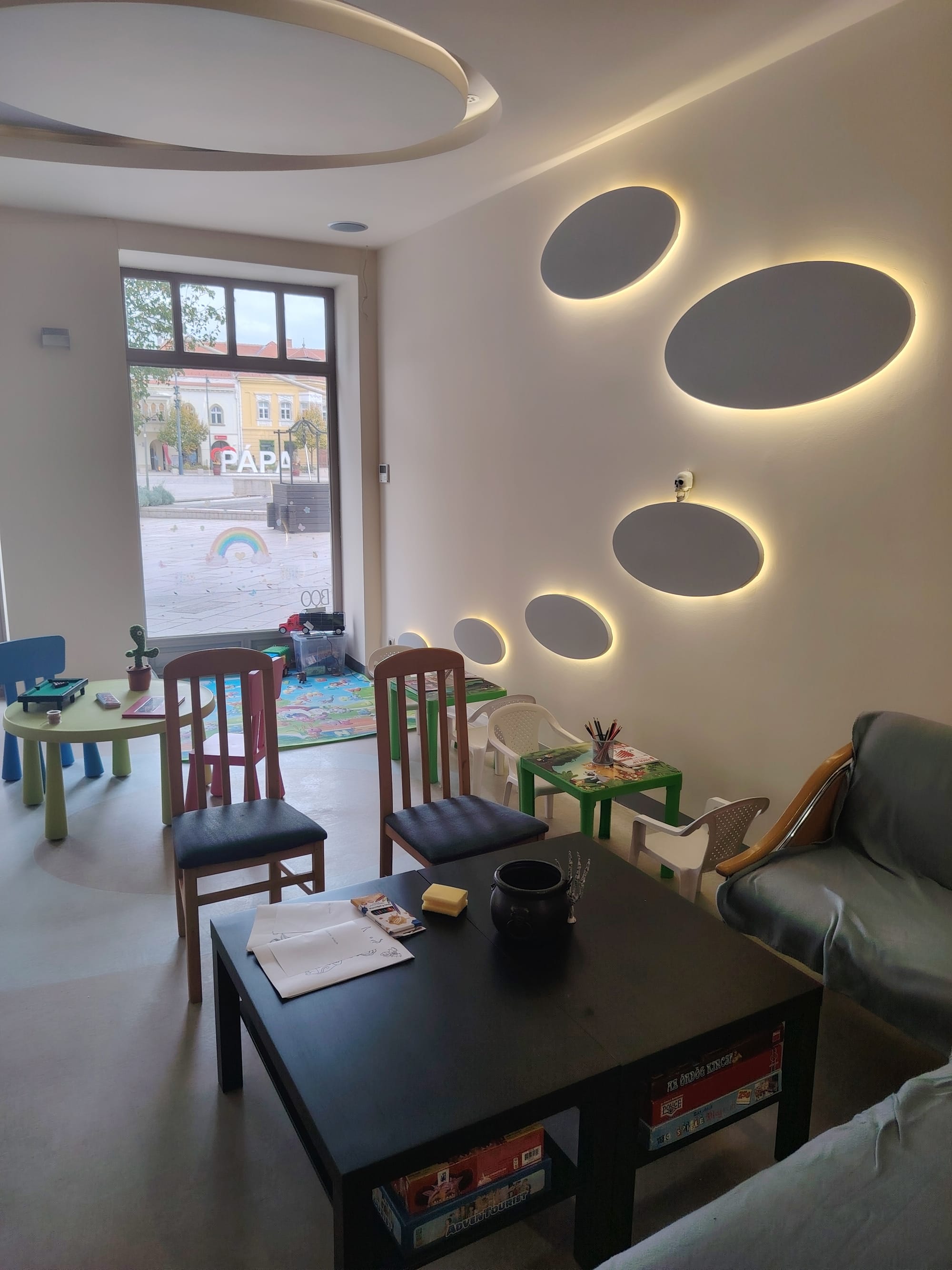 A gyereksarokkal össze kapcsolva, ahol a szülők, nagyszülők is be tudnak kapcsolódni a játékba. Társasjátékok, kártyák, logikai játékok állnak rendelkezésre