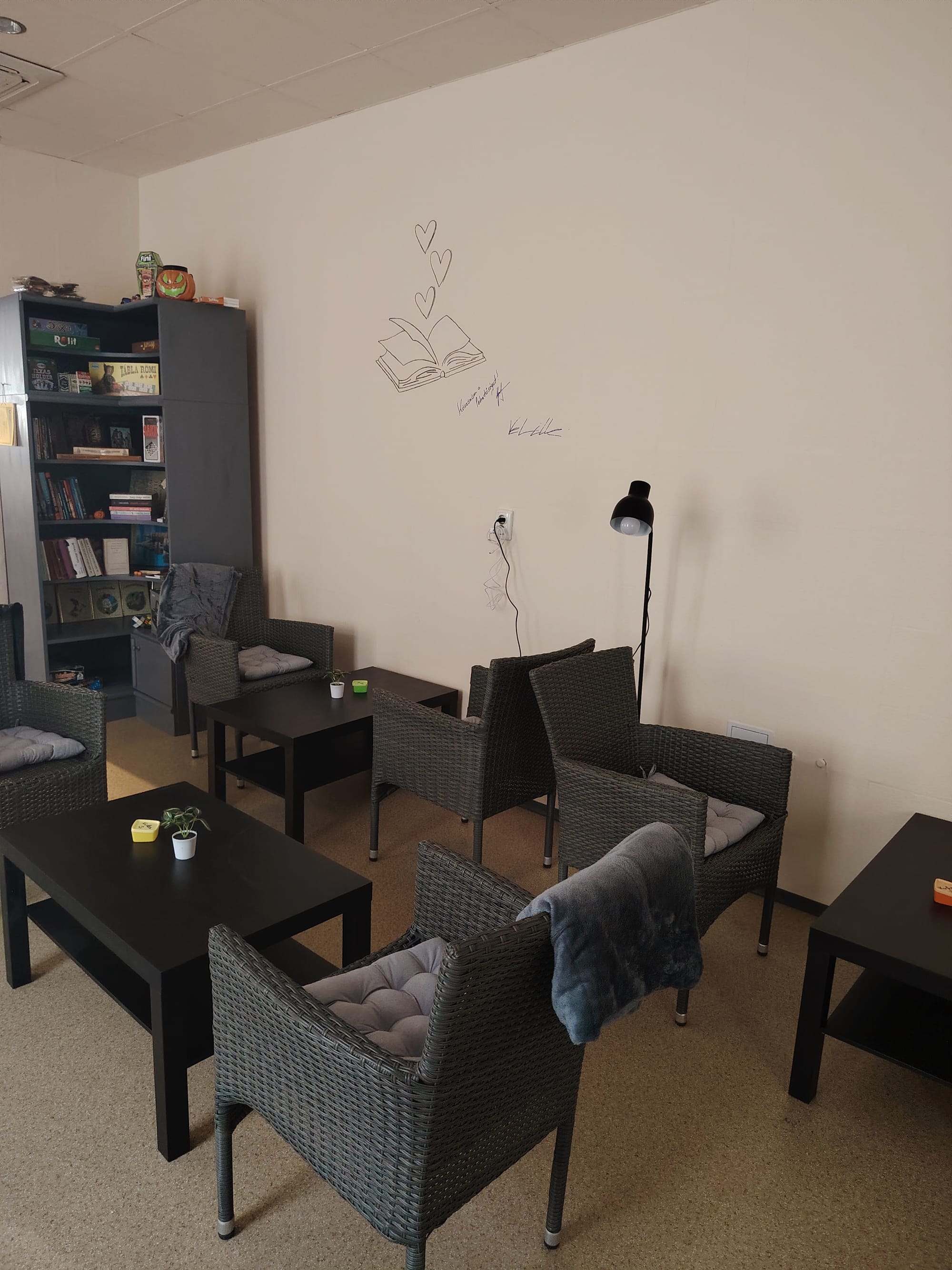 Egy kis tér az olvasni vágyóknak. Be rendezett könyvespolcal, ahol több stílusú könyv található. Kényelmes székek, olvasó lámpa, laptop barát, töltési lehetőséggel. Nincs más dolga, mint egy ital mellé le venni egy könyvet, kényelembe helyezni magát, és magába szívni a tartalmat