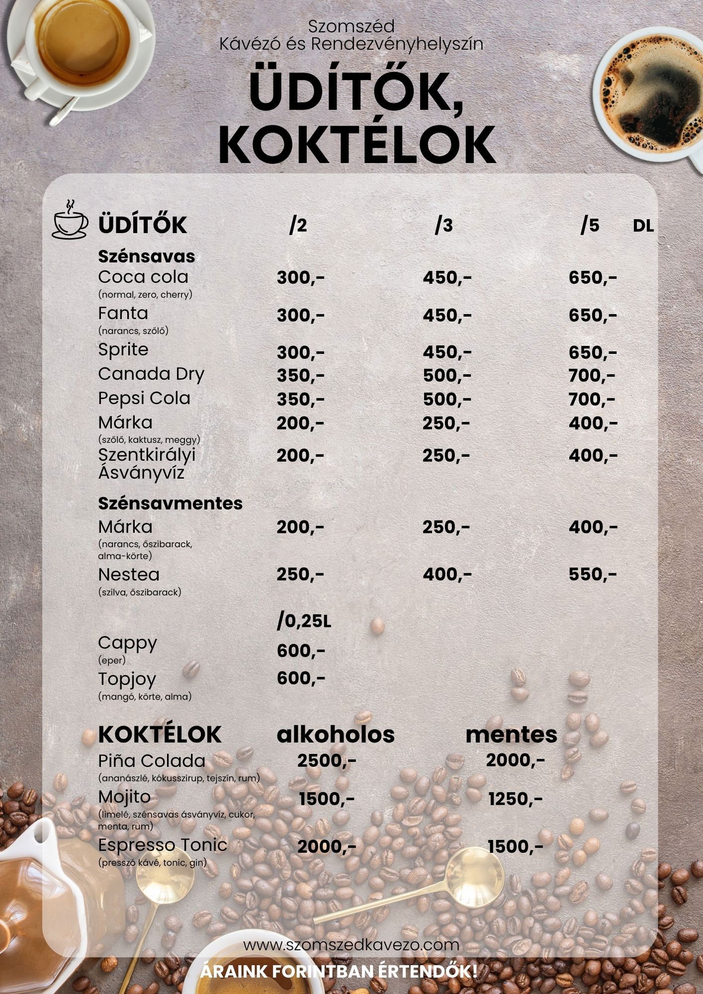 Rádió, YouTube Music, élő zenés napok. Továbbá a helység bérlése esetén, amennyiben igény van rá, külön díj nélkül használható hangtechnika